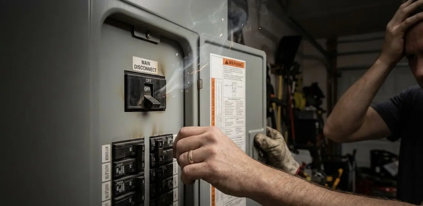 最常見的居家跳電危機 一般家庭最常發生的狀況,通常是因為「用電超載」引起的跳電。當同一個迴路上同時使用多個高功率電器(例如:微波爐、吹風機、烤箱同時運作),電流超過了無熔絲開關的安全負荷上限,開關就會啟動保護機制自動跳脫,以免電線因過熱而引發火災。