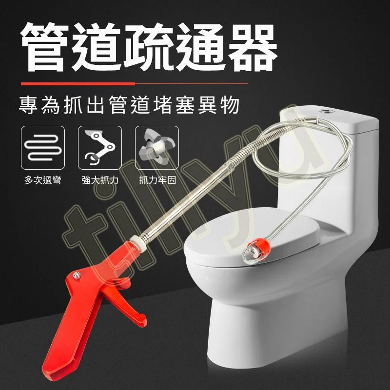 可以在網路上購買管道疏通器,放入排水口中旋轉、推除堵塞物,此外也可以將衣架拉開,使用勾子那一端將堵塞物取出,也是一個實用得方式呦!
